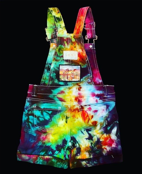 DKNY kids size 4T overalls one of a kind handmade in Joshua Tree California featuring art from the traveling painter