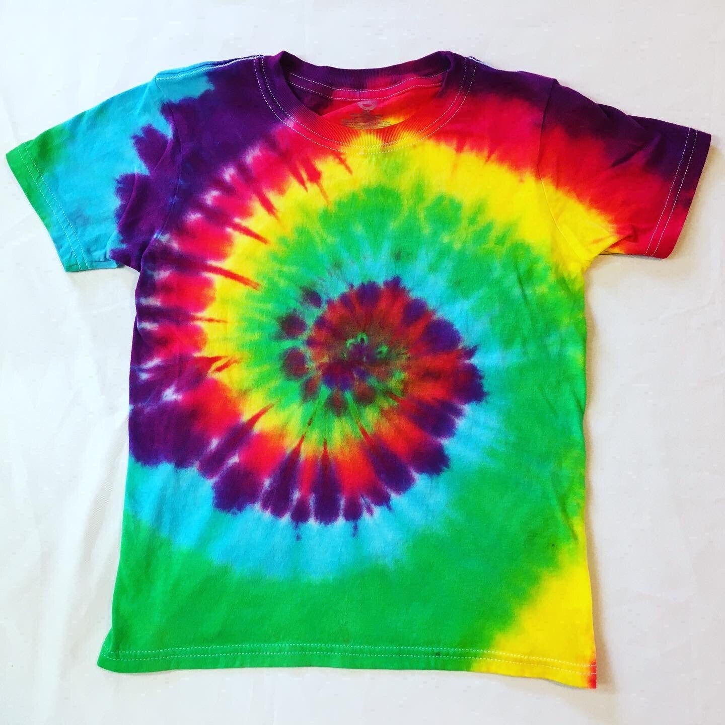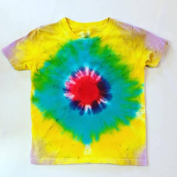 You will get the exact shirt pictured in the photo. Peace out with these one of a kind tees. Tie Dye kids T-shirt in size medium. Comes in various colors and designs to choose from. Fiber reactive dye on 100% cotton Wonder Nation brand shirts.
