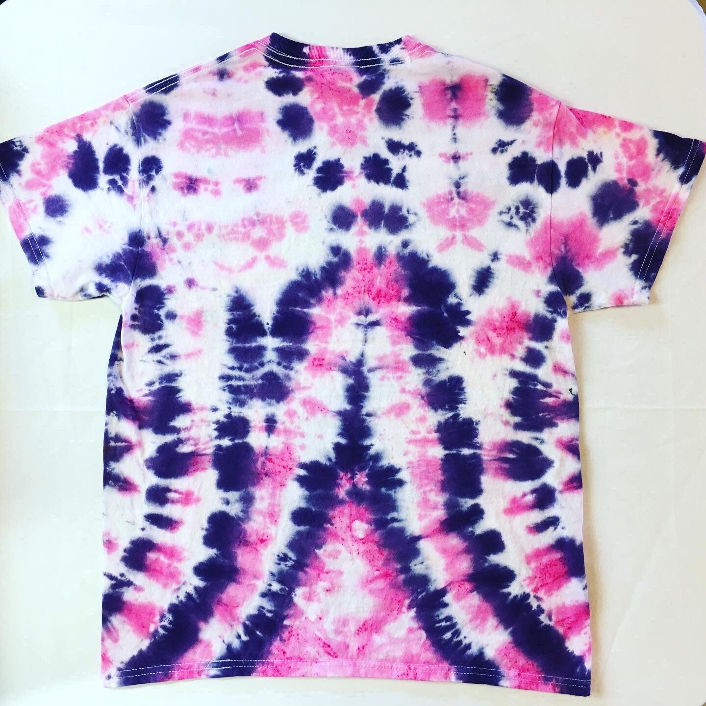 You will get the exact shirt pictured in the photo. Peace out with these one of a kind tees. Tie Dye Adult T-shirt in size Medium. Comes in various colors and designs to choose from. Fiber reactive dye on 100% cotton Gildan brand shirts.