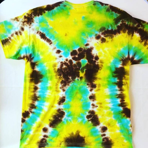 You will get the exact shirt pictured in the photo. Peace out with these one of a kind tees. Tie Dye Adult T-shirt in size Large. Comes in various colors and designs to choose from. Fiber reactive dye on 100% cotton Gildan brand shirts.