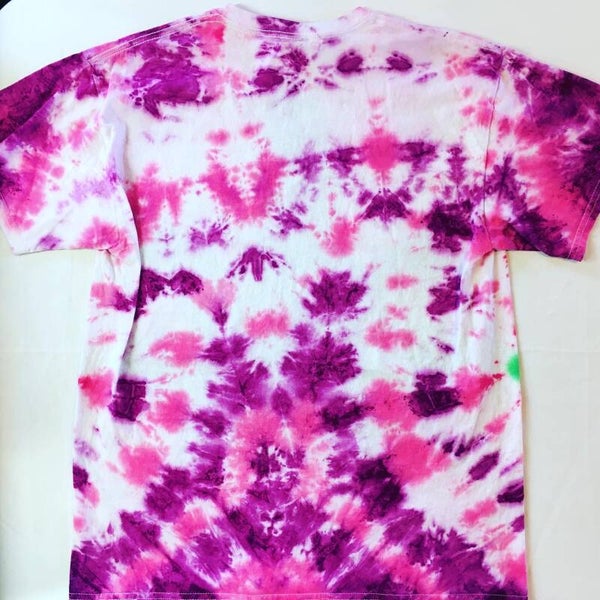 You will get the exact shirt pictured in the photo. Peace out with these one of a kind tees. Tie Dye Adult T-shirt in size Large. Comes in various colors and designs to choose from. Fiber reactive dye on 100% cotton Gildan brand shirts.
