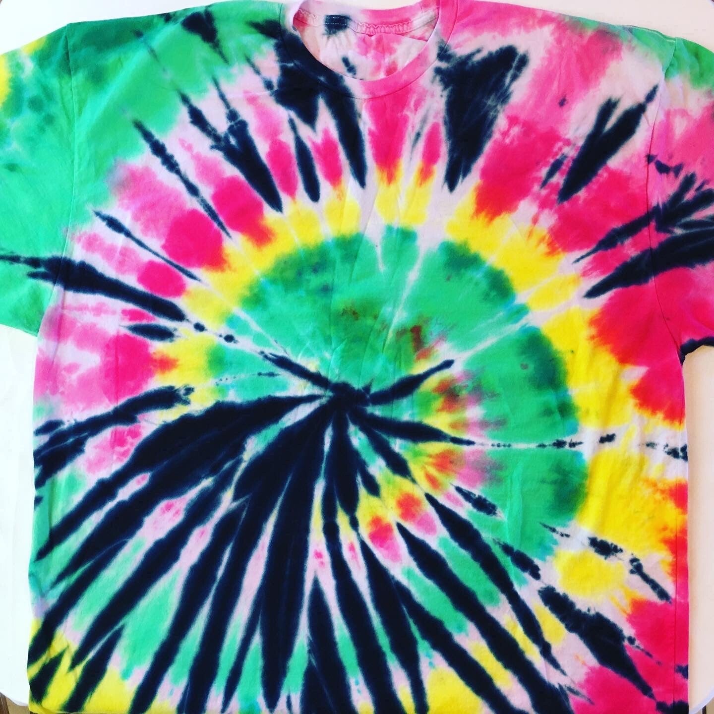 You will get the exact shirt pictured in the photo. Peace out with these one of a kind tees. Tie Dye Adult T-shirt in size 3X Large. Comes in various colors and designs to choose from. Fiber reactive dye on 100% cotton Gildan brand shirts.