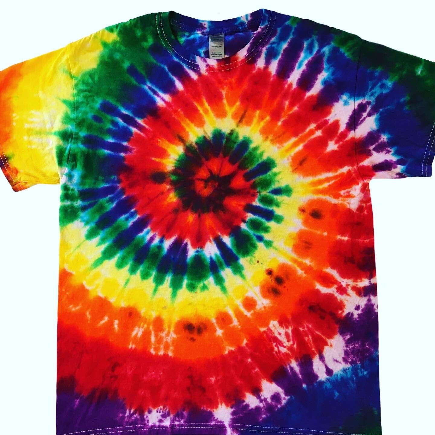 You will get the exact shirt pictured in the photo. Peace out with these one of a kind tees. Tie Dye Adult T-shirt in size Large. Comes in various colors and designs to choose from. Fiber reactive dye on 100% cotton Gildan brand shirts.