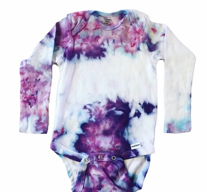 You will get the exact shirt pictured in the photo. Peace out with these one of a kind tees. Tie Dye baby onesie shirt in size 24 months. Comes in various colors and designs to choose from. Fiber reactive dye on 100% cotton Gerber brand organic baby onesie.