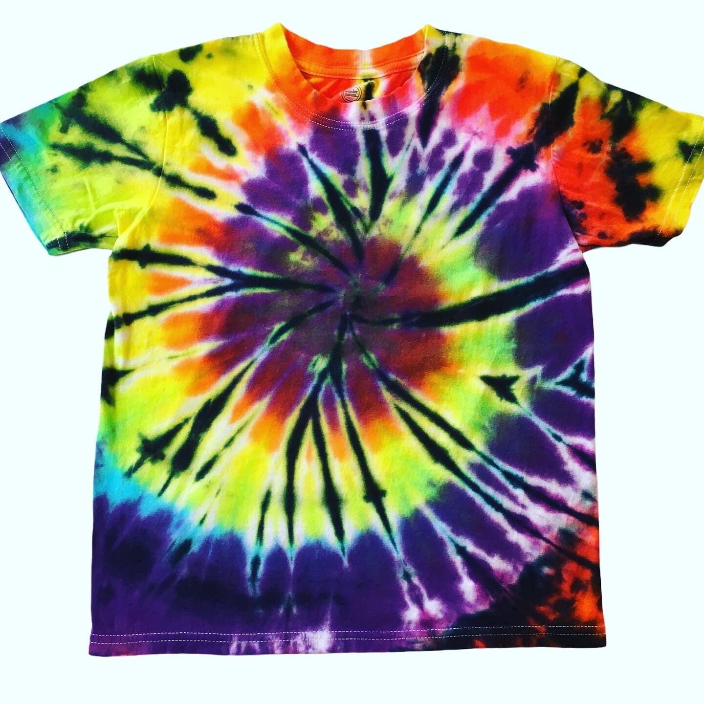 You will get the exact shirt pictured in the photo. Peace out with these one of a kind tees. Tie Dye kids T-shirt in size medium. Comes in various colors and designs to choose from. Fiber reactive dye on 100% cotton Wonder Nation brand shirts.