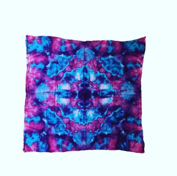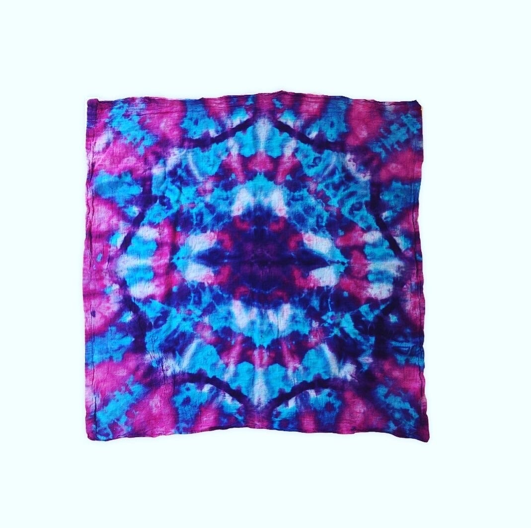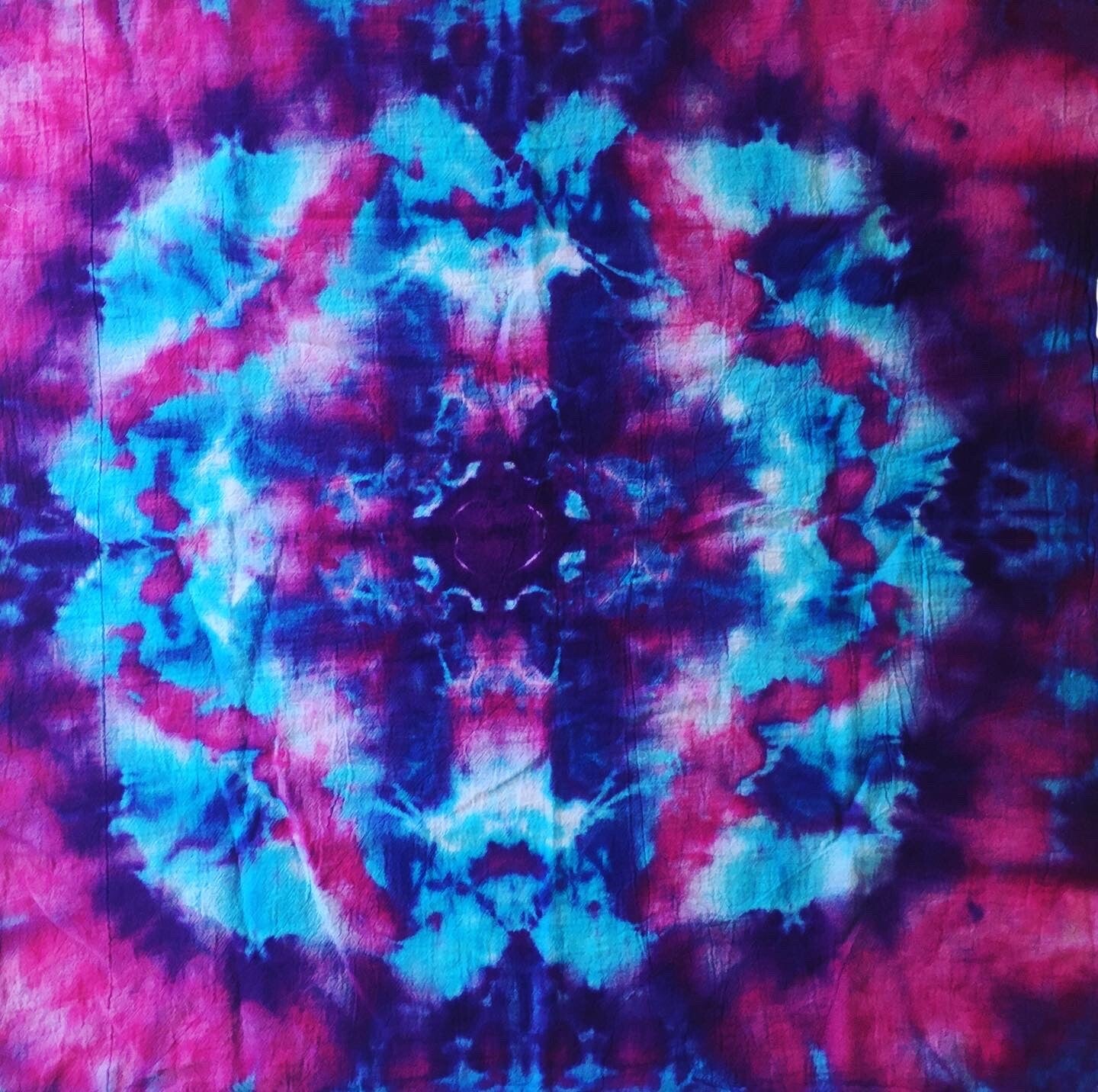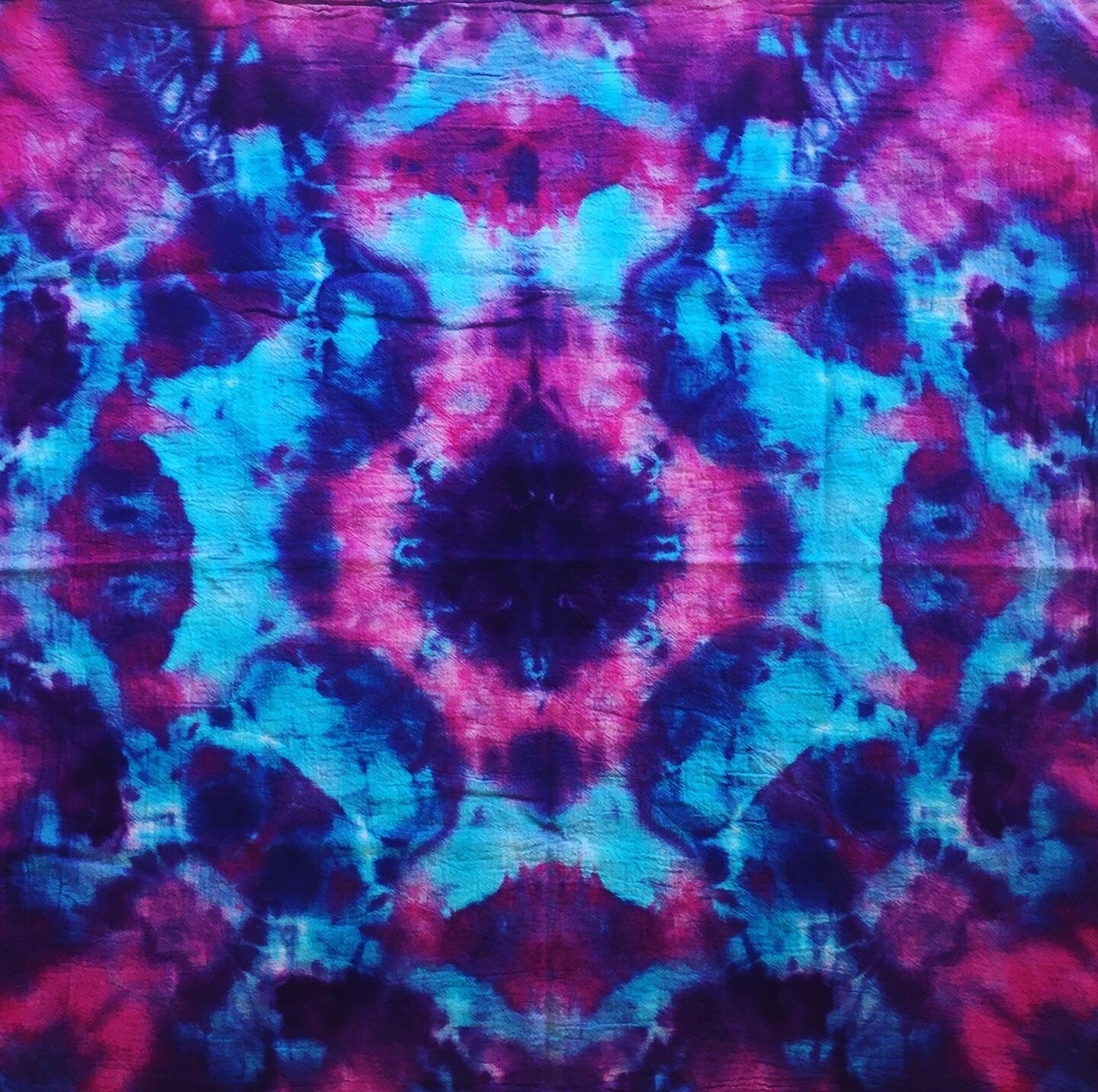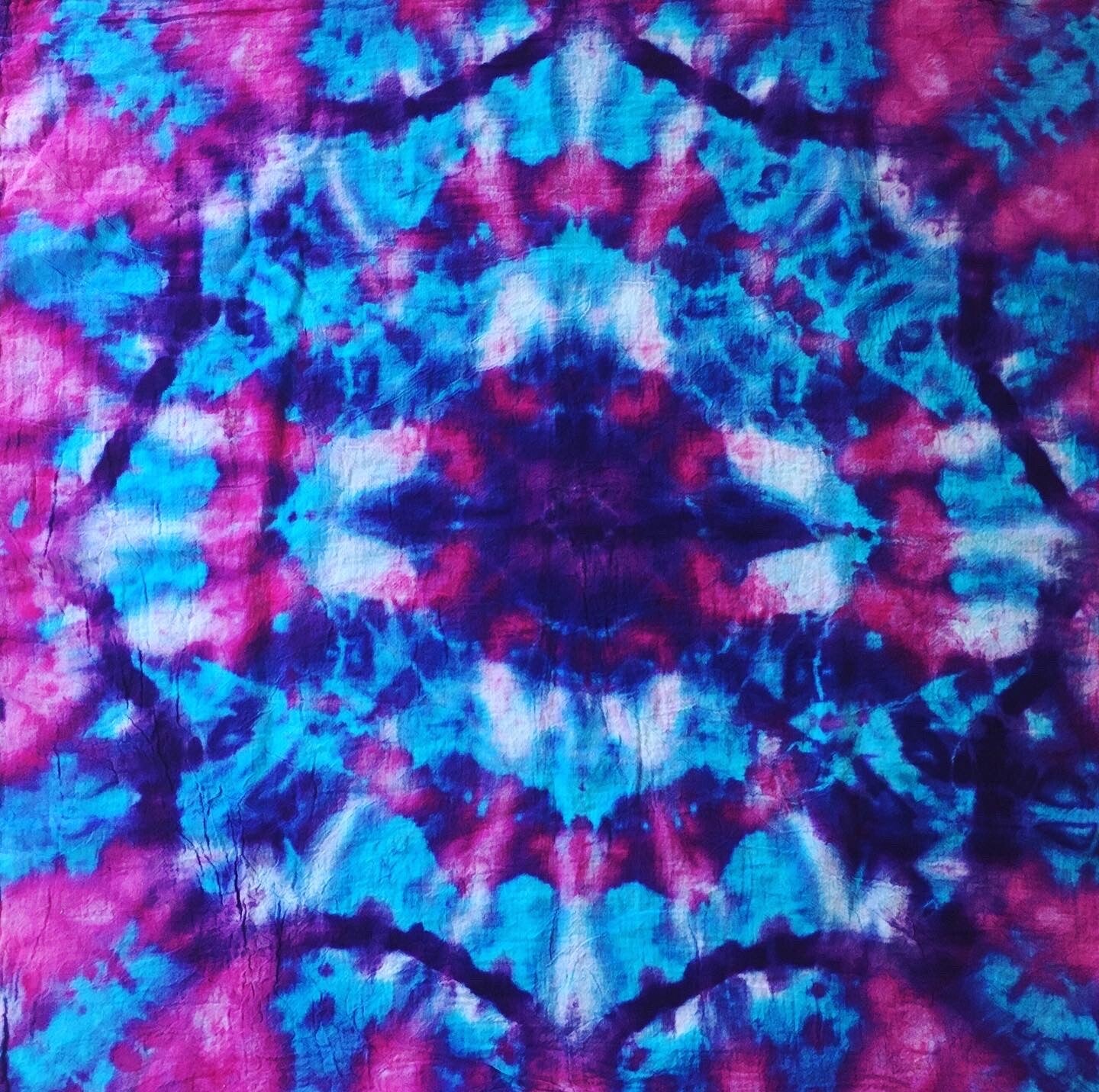 Peace out with these one of a kind Tapestries made with desert snow. Measures 2' X 2'. Hand dyed tapestries are similar but differ slightly from each other. Fiber reactive dye on 100% cotton.
