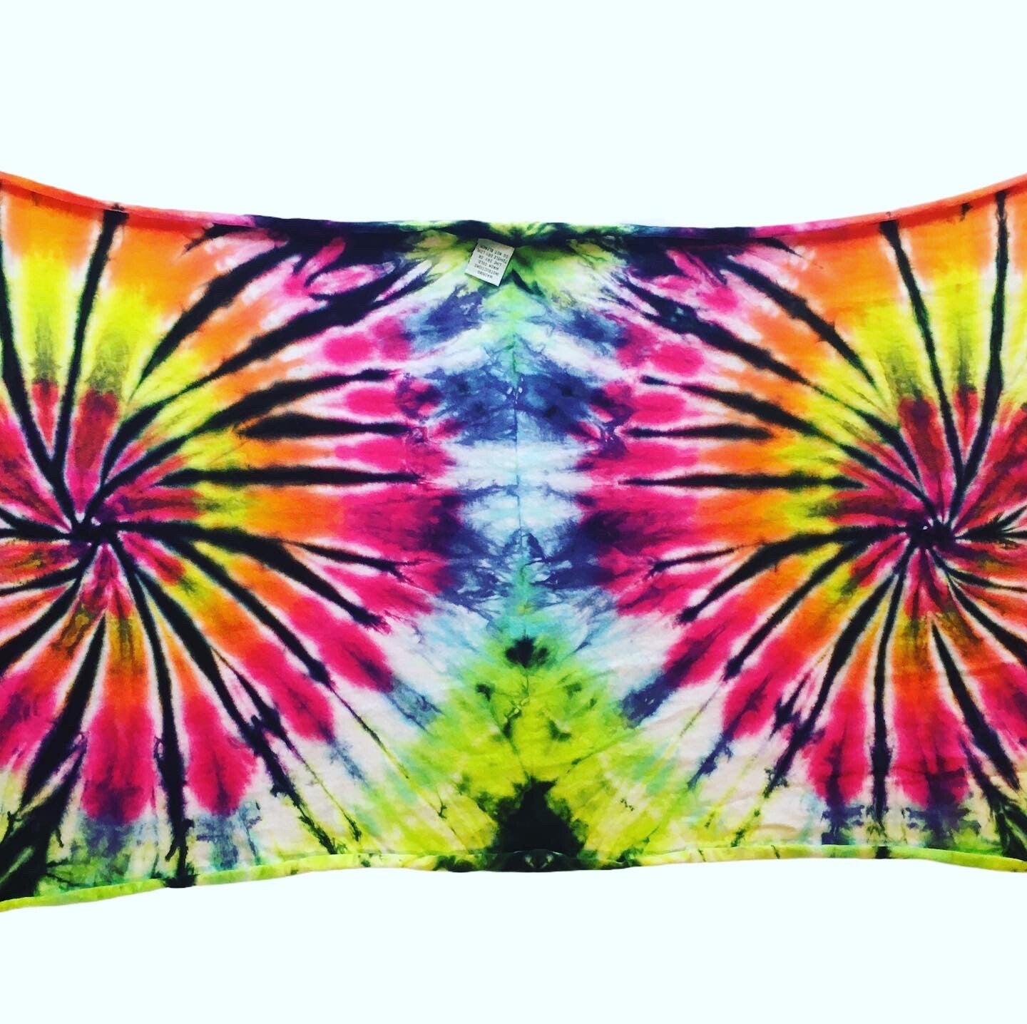 Peace out with these one of a kind Beach Wraps. Perfect for a little cover up at the beach or around the pool. Tie Dye Women's Wrap comes in one size and has ties for tying around the waist. Hand dyed Wraps are similar but differ slightly from each other. Fiber reactive dye on 100% cotton wraps.