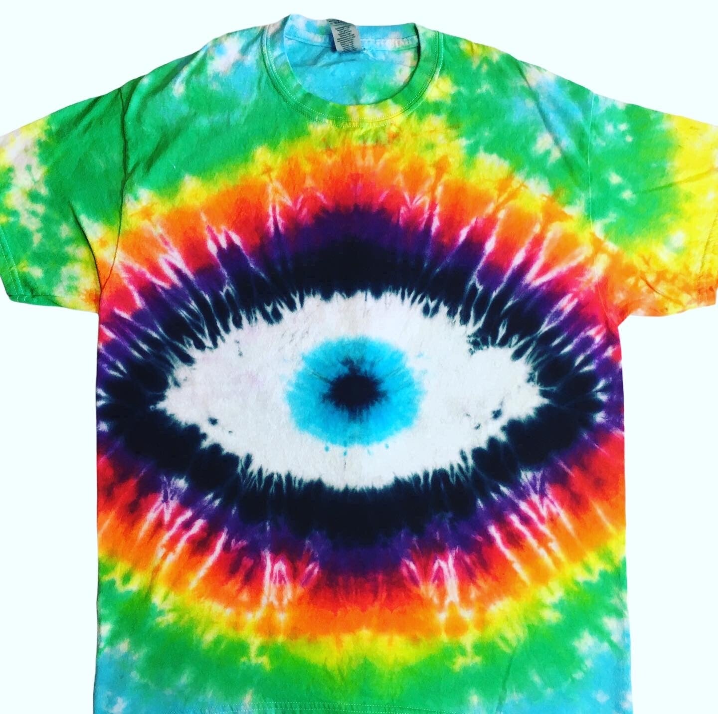 Peace out with these one of a kind tees featuring the Third Eye. Tie Dye Adult T-shirt comes in size Small, Medium, Large, XLarge, 2XL, 3XL, 4XL and 5XL. Hand dyed shirts are similar but differ slightly from each other. Fiber reactive dye on 100% cotton Gildan brand shirts.