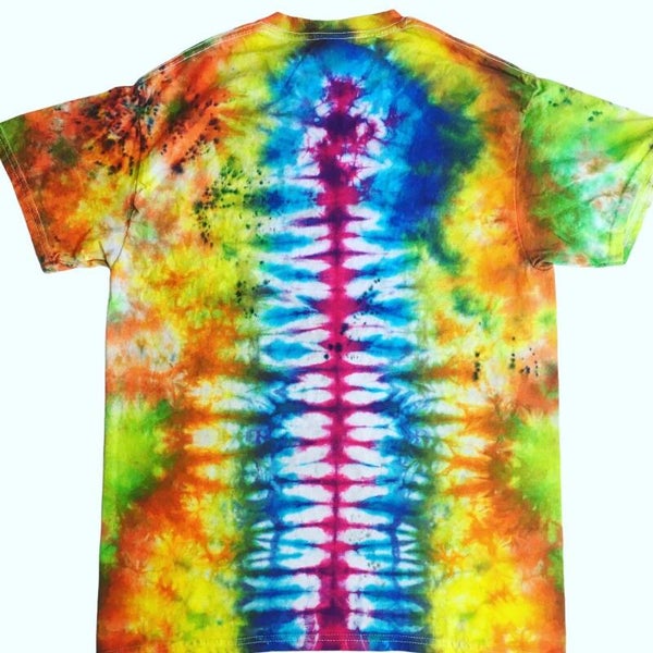 You will get the exact shirt pictured in the photo. Peace out with these one of a kind tees. Tie Dye Adult T-shirt in size Medium. Comes in various colors and designs to choose from. Fiber reactive dye on 100% cotton Gildan brand shirts.