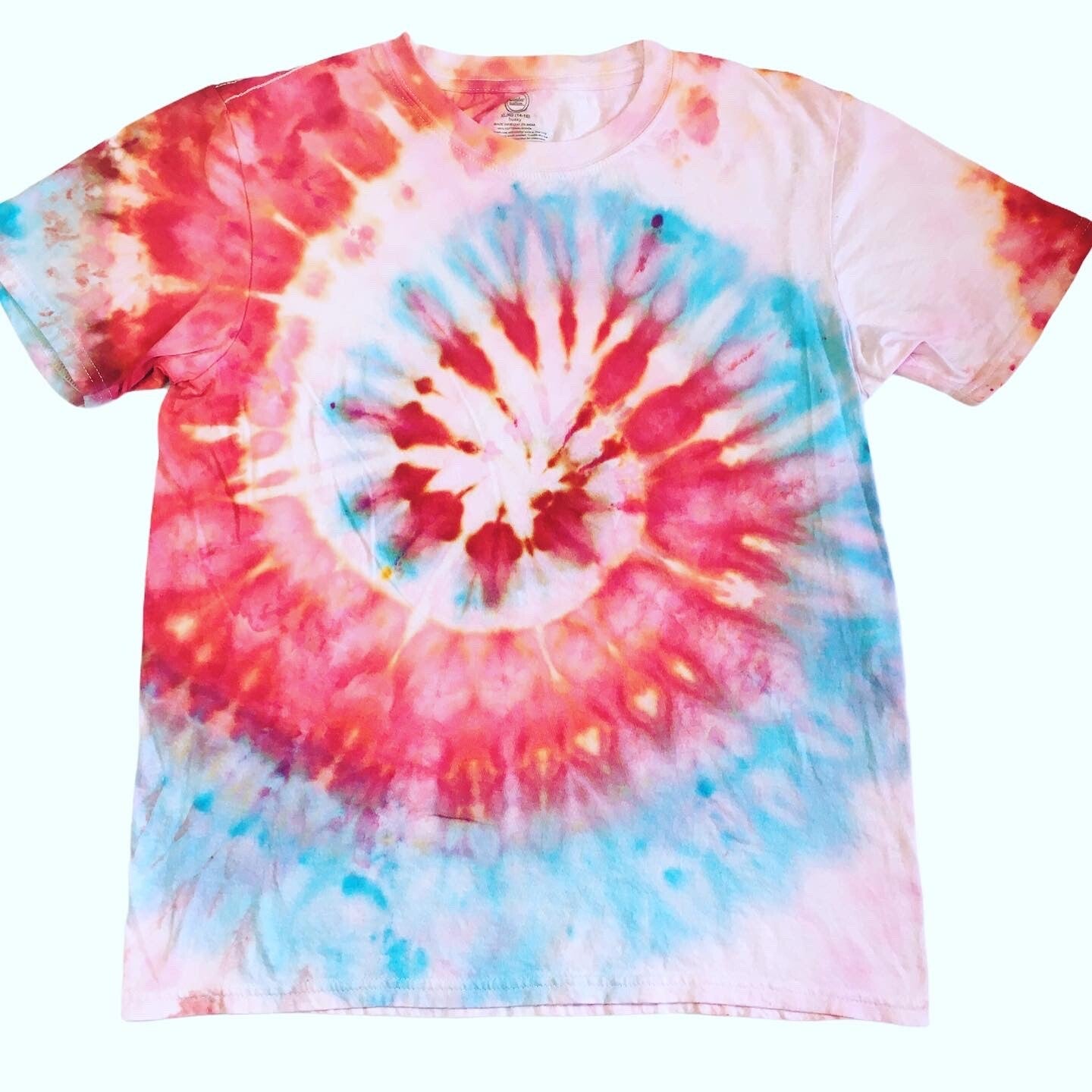 Peace out with these one of a kind tees. Tie Dye Kids T-shirt in size XLarge (14-16). Comes in various colors and designs to choose from. Hand Dyed shirts are similar but differ slightly from each other. Fiber reactive dye on 100% cotton Wonder Nation brand shirts.