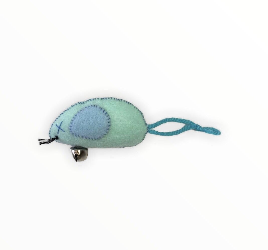 Your cat will Peace out with these fun cat toys in the shape of a mouse. This fun toy is sure to delight. Each is made from felt material and has a jingle bell for added sound. Stuffed with fiber fill fluff. Approximately 4"long (Cat nip not included)