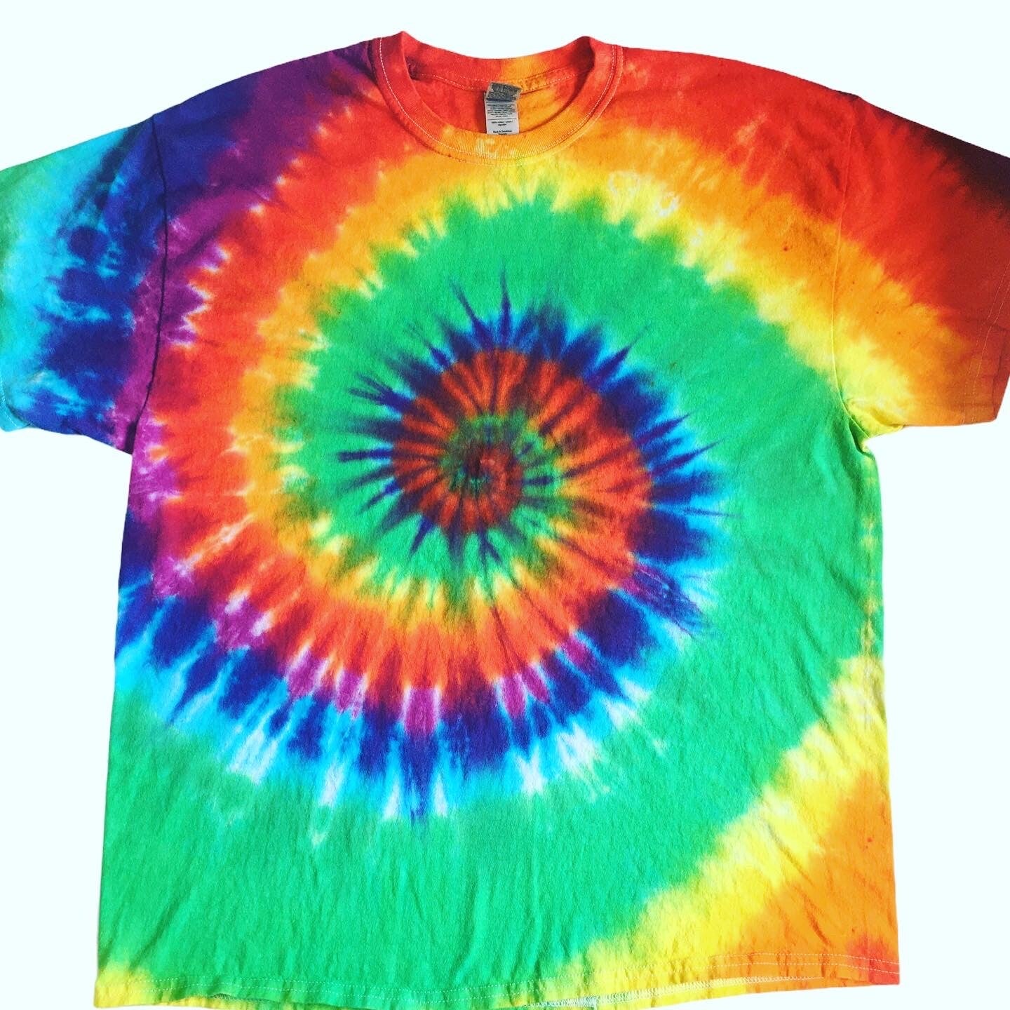 You will get the exact shirt pictured in the photo. Peace out with these one of a kind tees. Tie Dye Adult T-shirt in size XLarge. Comes in various colors and designs to choose from. Fiber reactive dye on 100% cotton Gildan brand shirts.