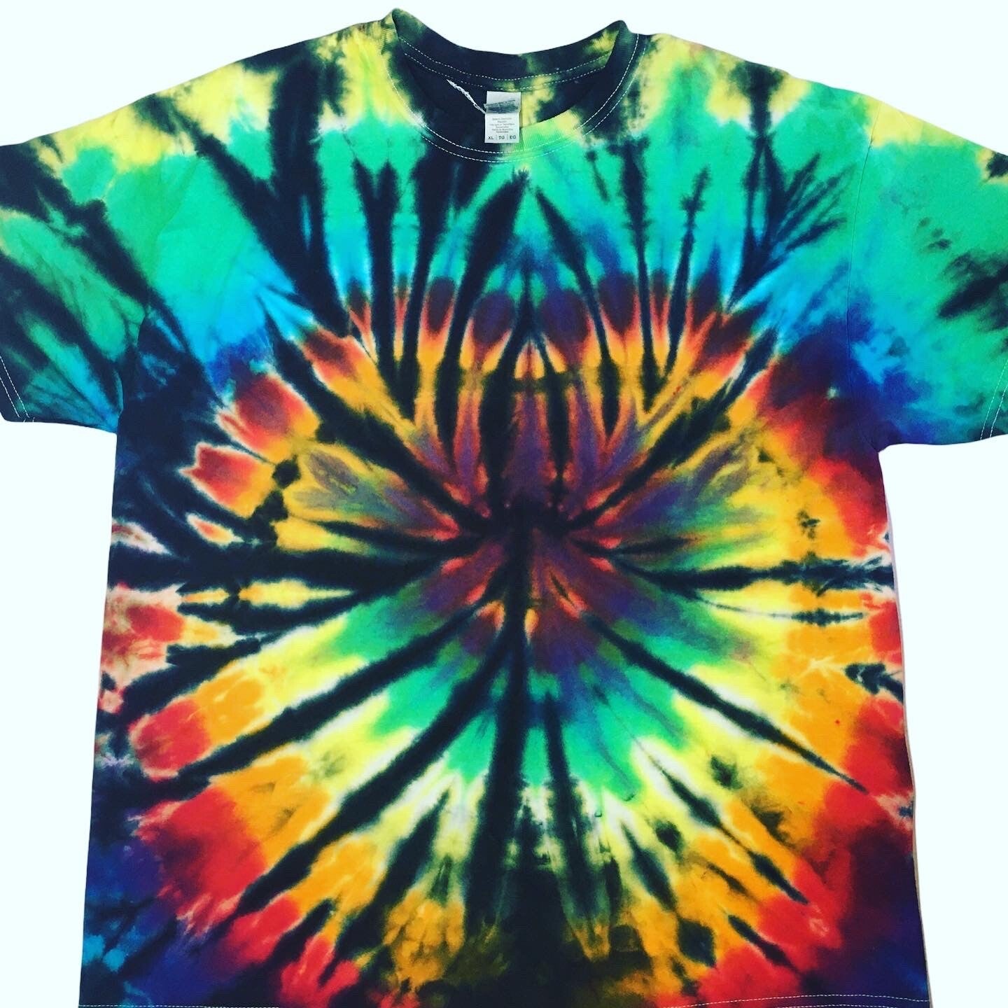 You will get the exact shirt pictured in the photo. Peace out with these one of a kind tees. Tie Dye Adult T-shirt in size XLarge. Comes in various colors and designs to choose from. Fiber reactive dye on 100% cotton Gildan brand shirts.