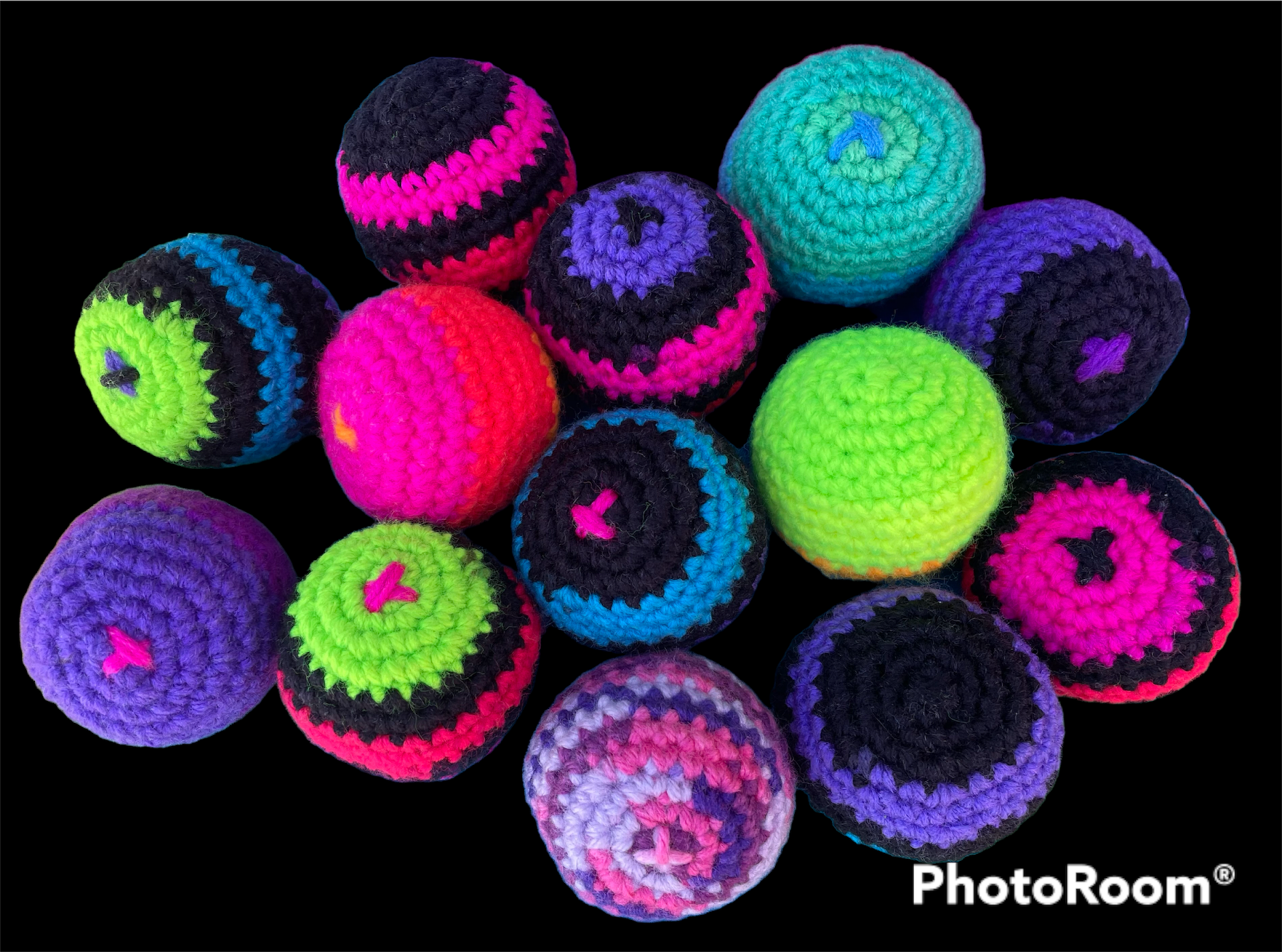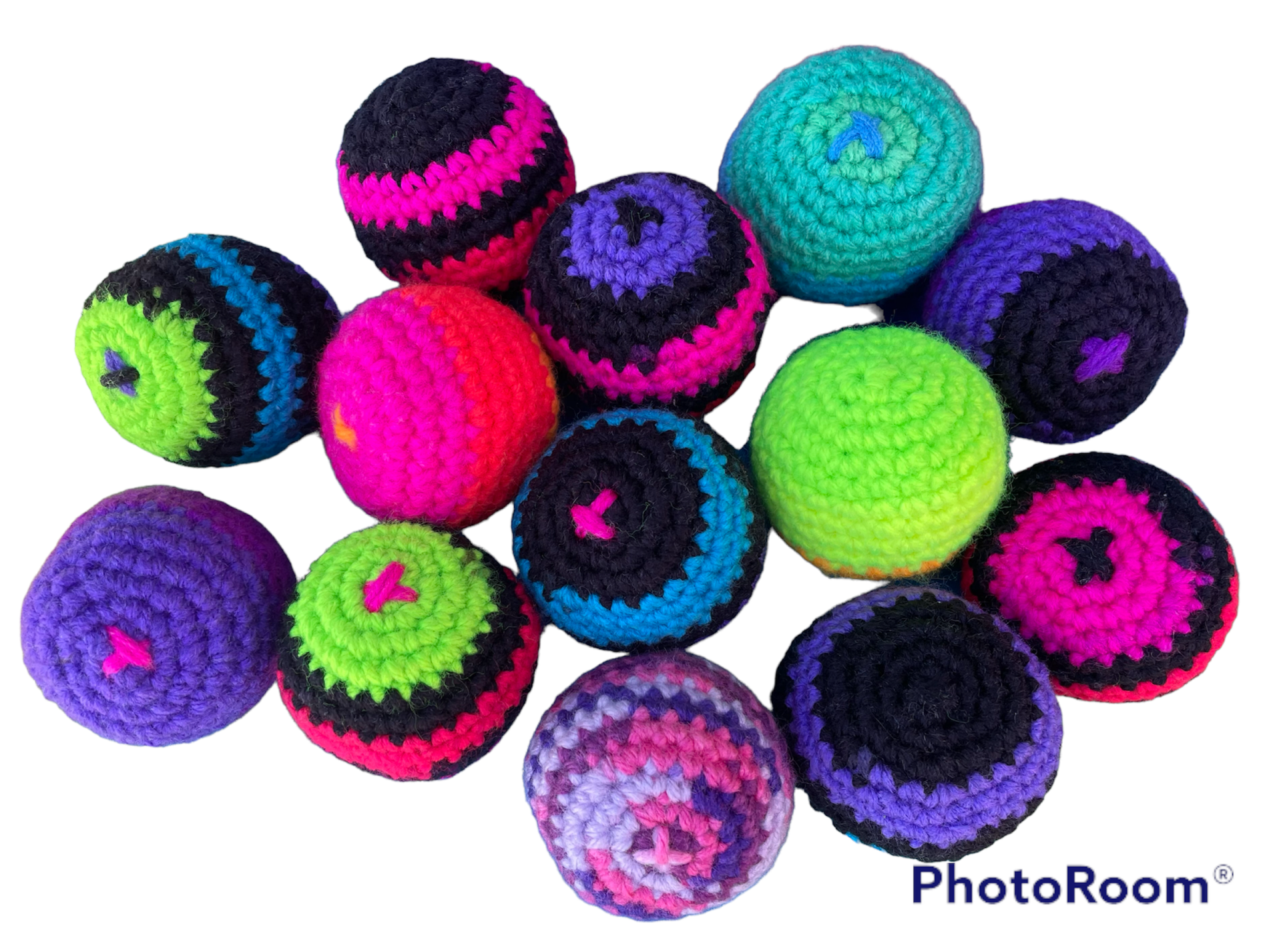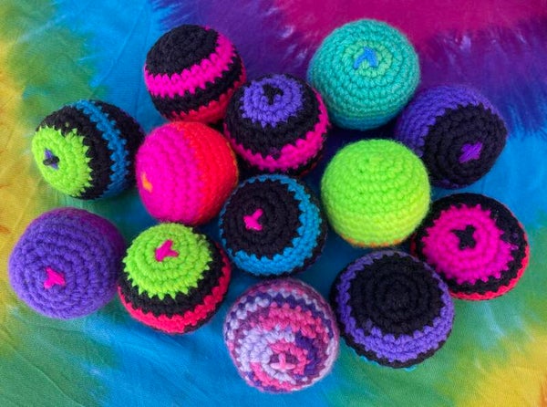 One Hand Crocheted Hacky Sack filled with plastic bean bag pellets. Made with cotton yarn and plastic pellets. Comes in many colors. Color choices are at random. Message me if you want a certain color.